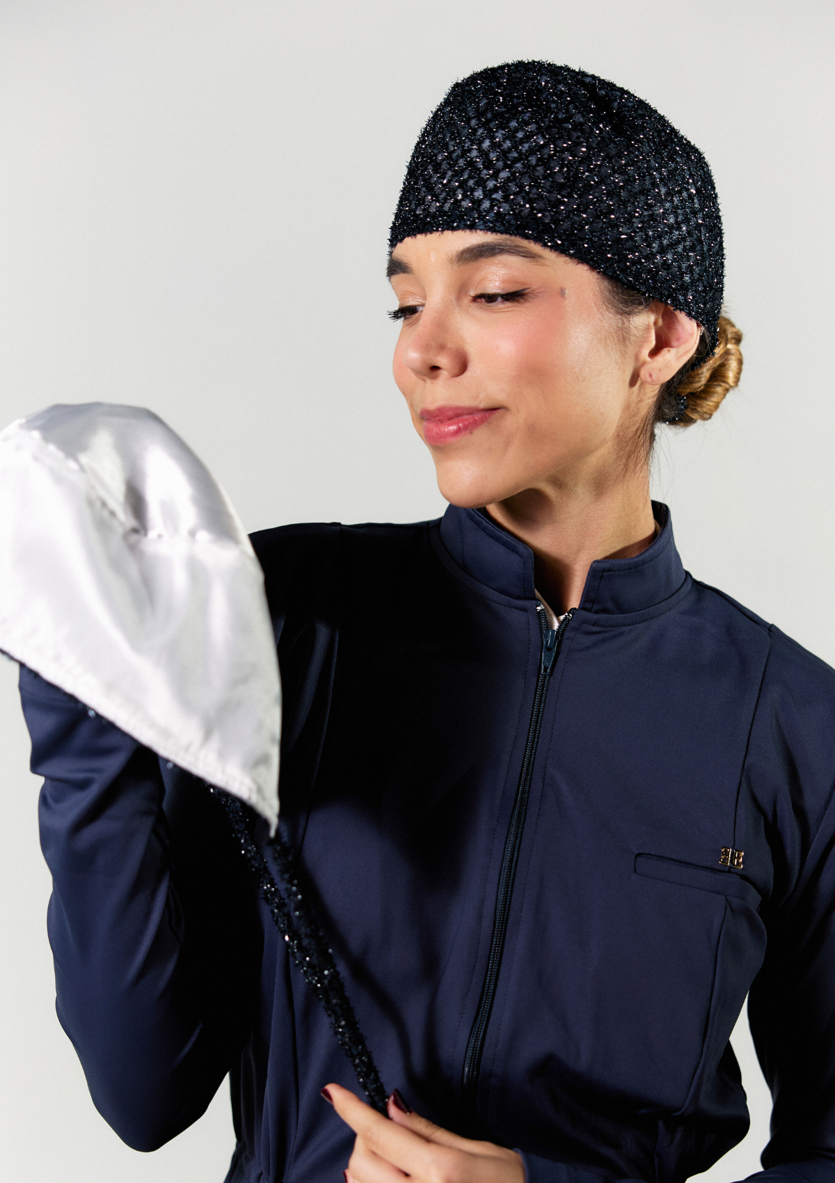 Tom de azul Chic na medida com um toque Glam. Essa touca com certeza está entre nossas melhores criações!
